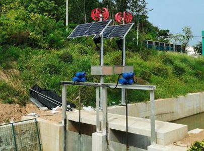 由太陽能光伏板和小型風(fēng)力發(fā)電機為蓄能電池組充電,電池組有BMS電池管理軟件管控,為永磁無刷直流電機的各類驅(qū)動裝置供電,同時為視頻監(jiān)控,壓力、流量、液位傳感器,照明等供電